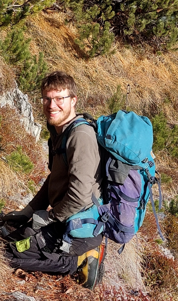Beim Abseilen entdeckt Hannes eine offene Kluft und erntet schöne Bergkristalle.