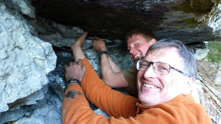 In late autumn, Hannes and Richi are allowed to find a large cleft, which they finish with the help of Walter in the early summer of 2019. The cleft is about six meters deep and gives us beautiful mountain crystals, siderite and barite crystals.